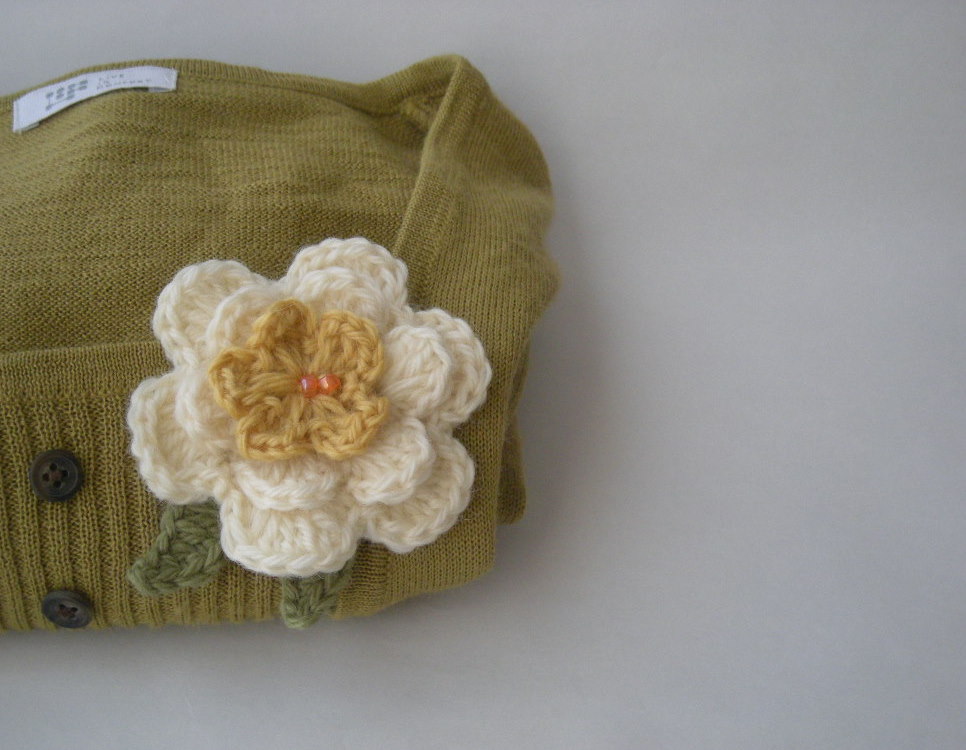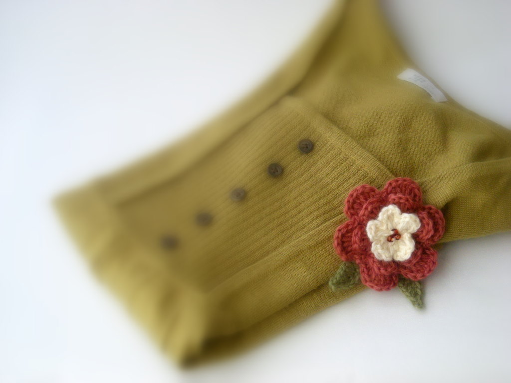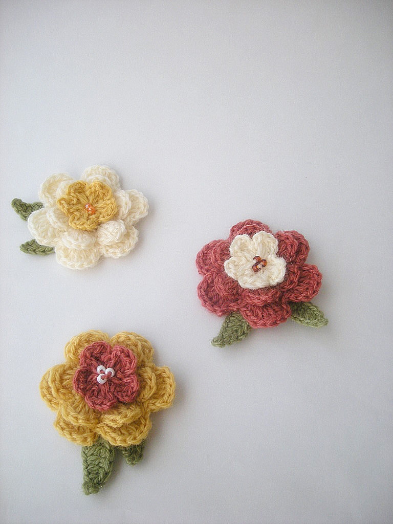 今回は3色の毛糸でお花のモチーフを編むのが課題。 中長編みと長編みの練習です。