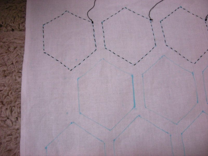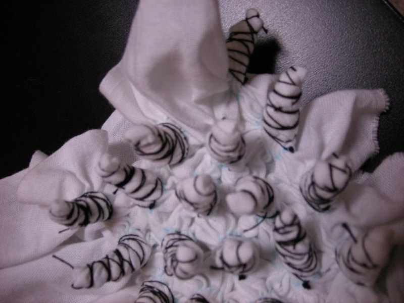 ③もう一枚は絞り染めにします。下絵を手芸用のペンで書いてから