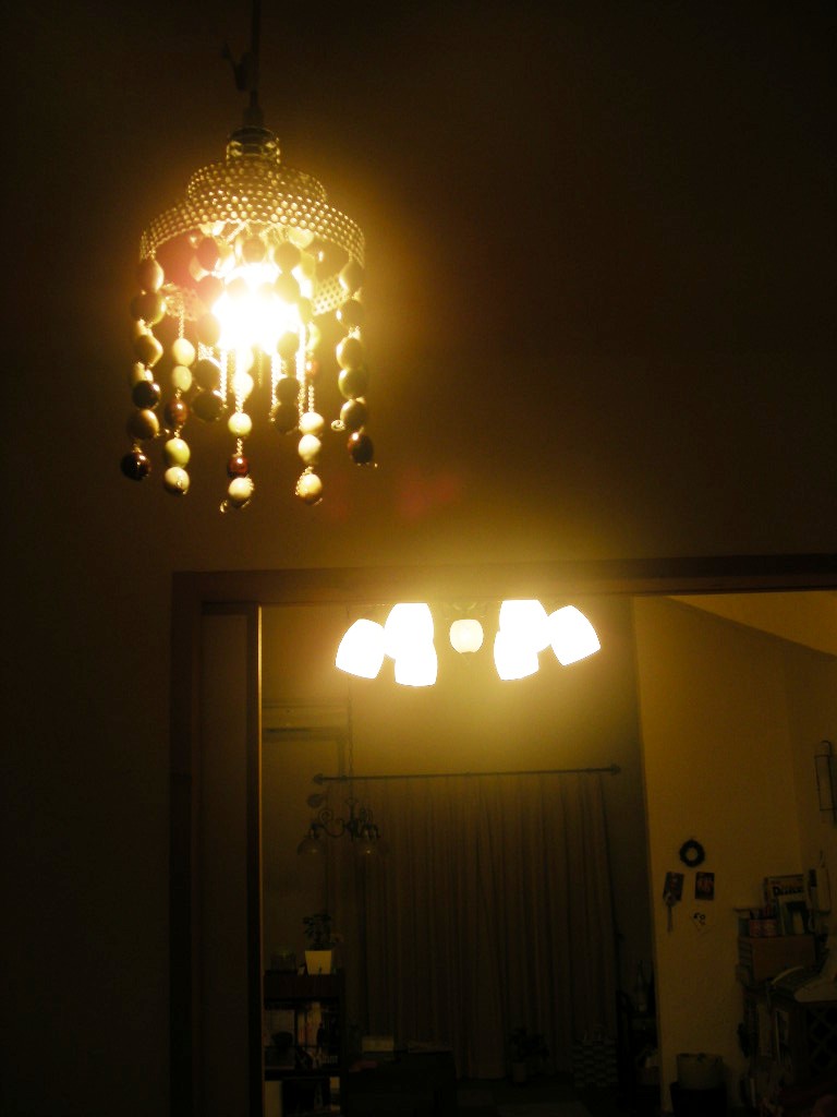 陶器製のビーズがゆらゆらと揺れながら、吊るされておりまする。。