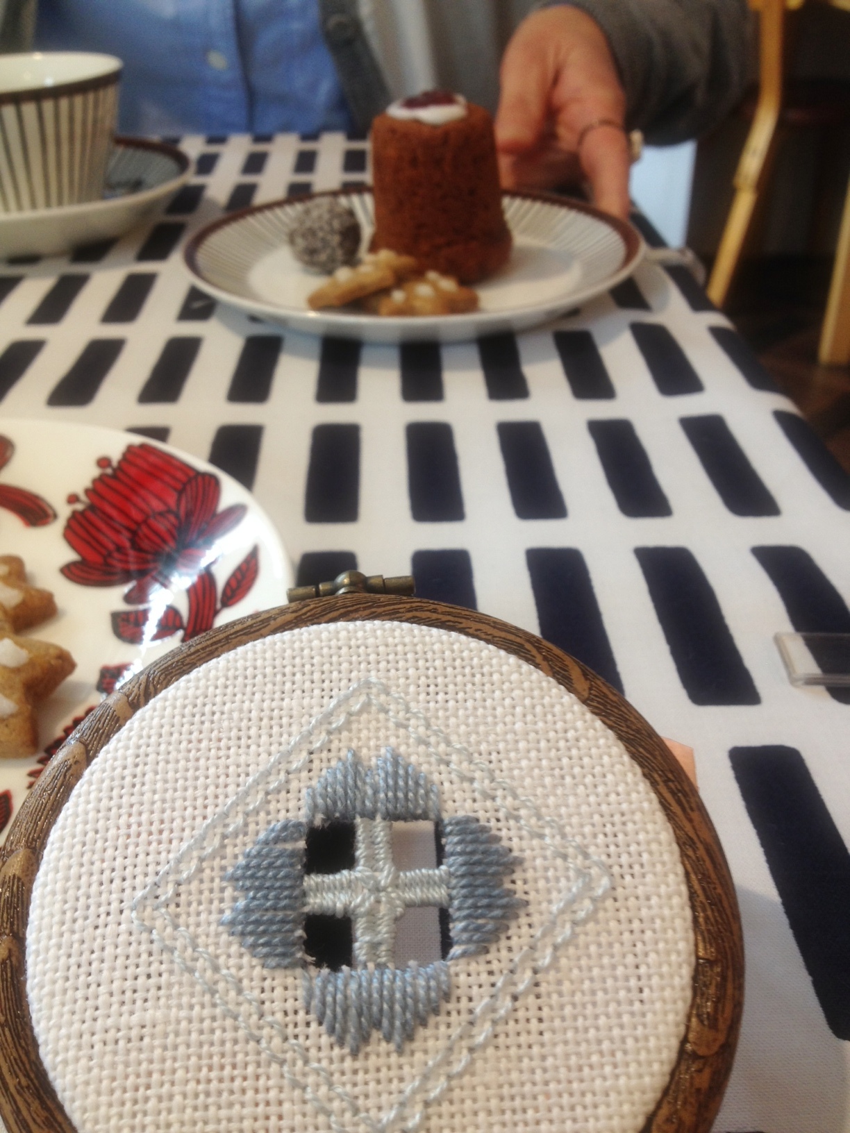 壇上では刺繍のワークショップをやっていたり、心地よい音楽が流れていたり。