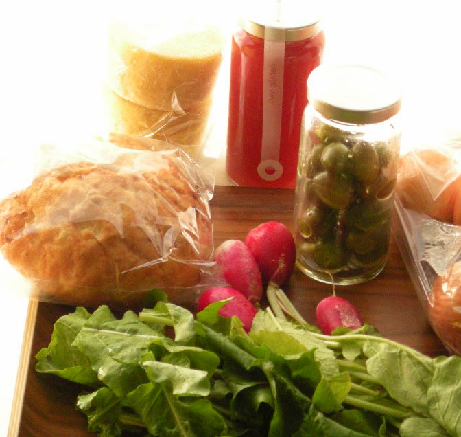 写真奥のグリーンサラダにもルッコラが入ってます。