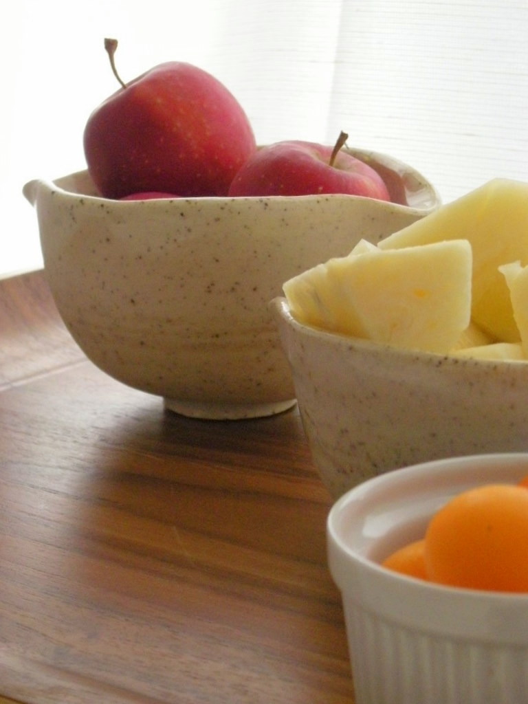 つれあいのお弁当用に購入した姫リンゴとパイナップル。