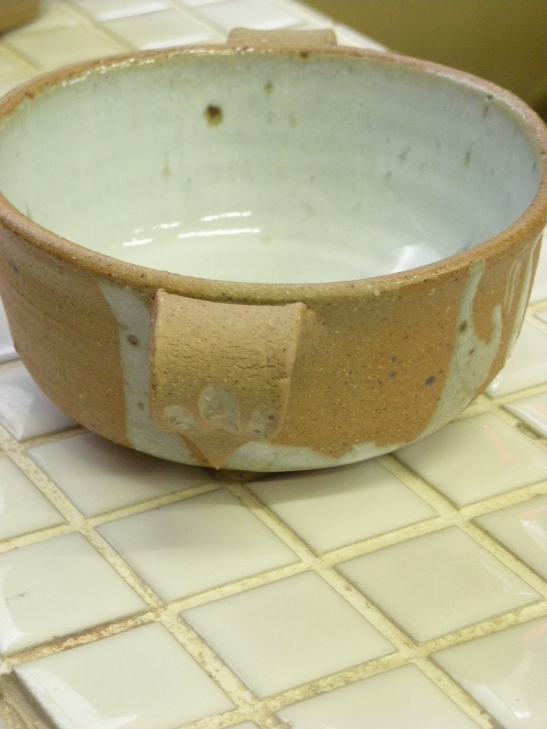 器の中の黒っぽい点々は、窯の中の灰が散った名残。